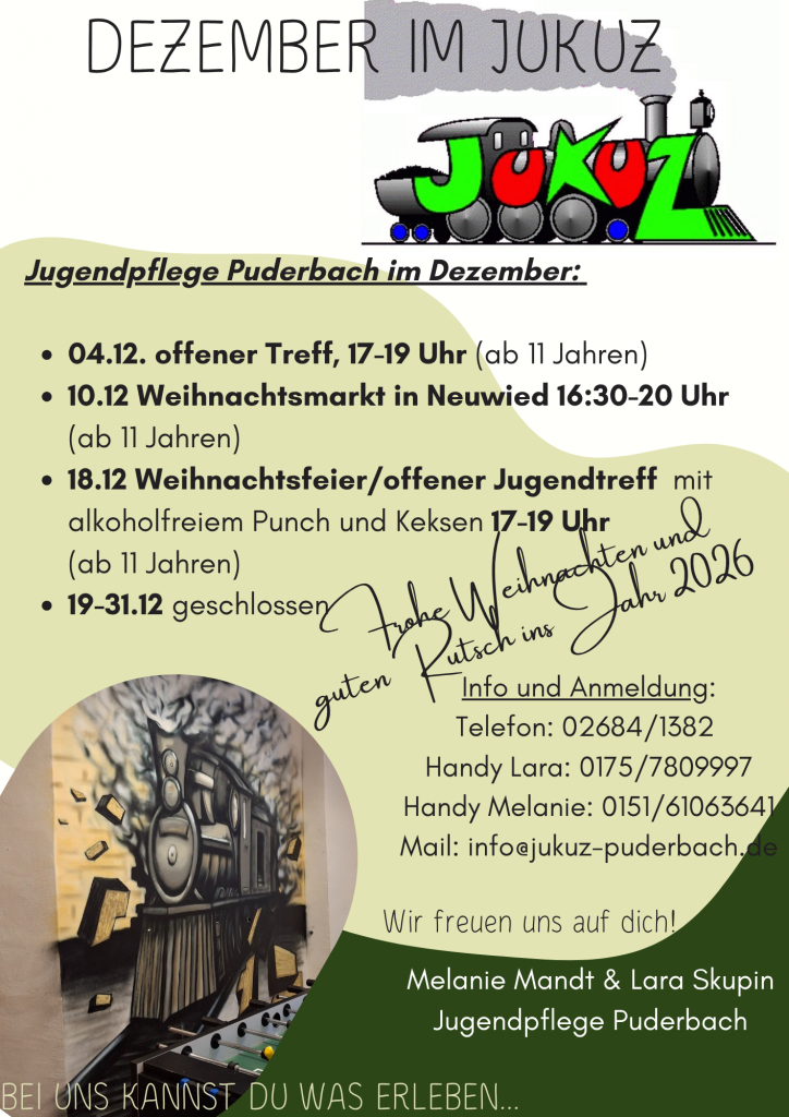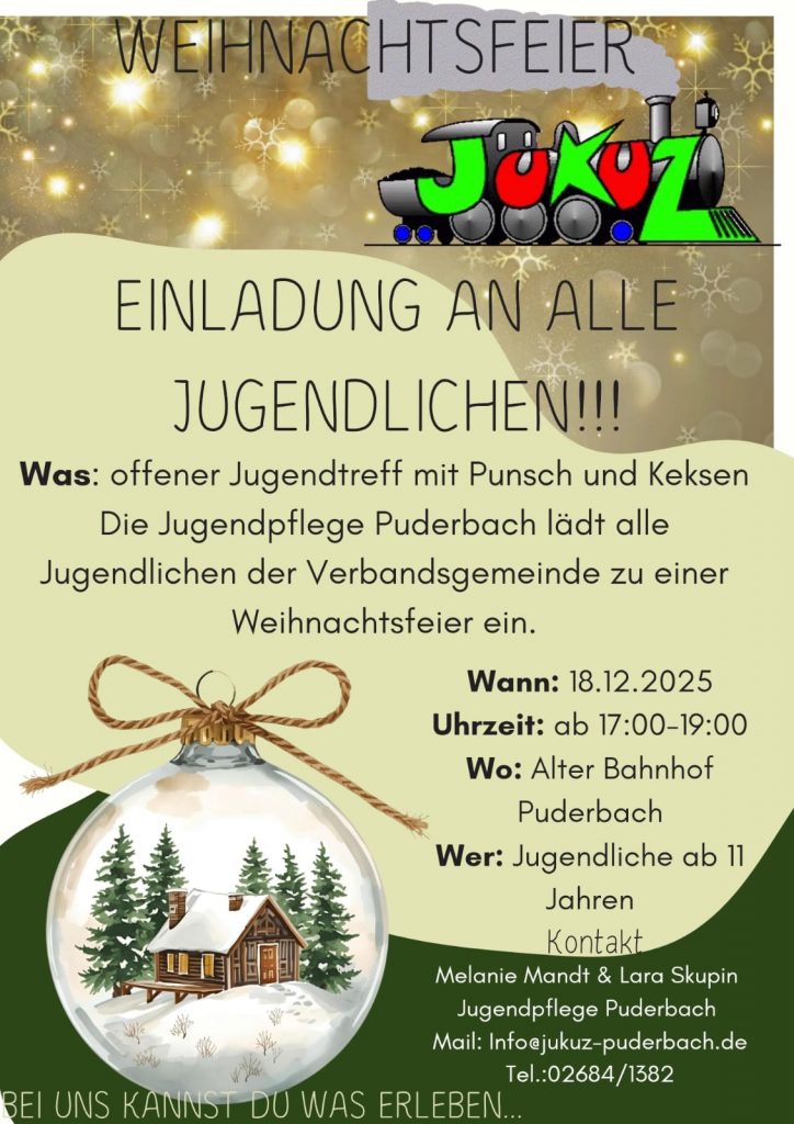 Möchtest auch du die Jugendpflege Puderbach unterstützen, melde dich unter info@jukuz-puderbach.de .