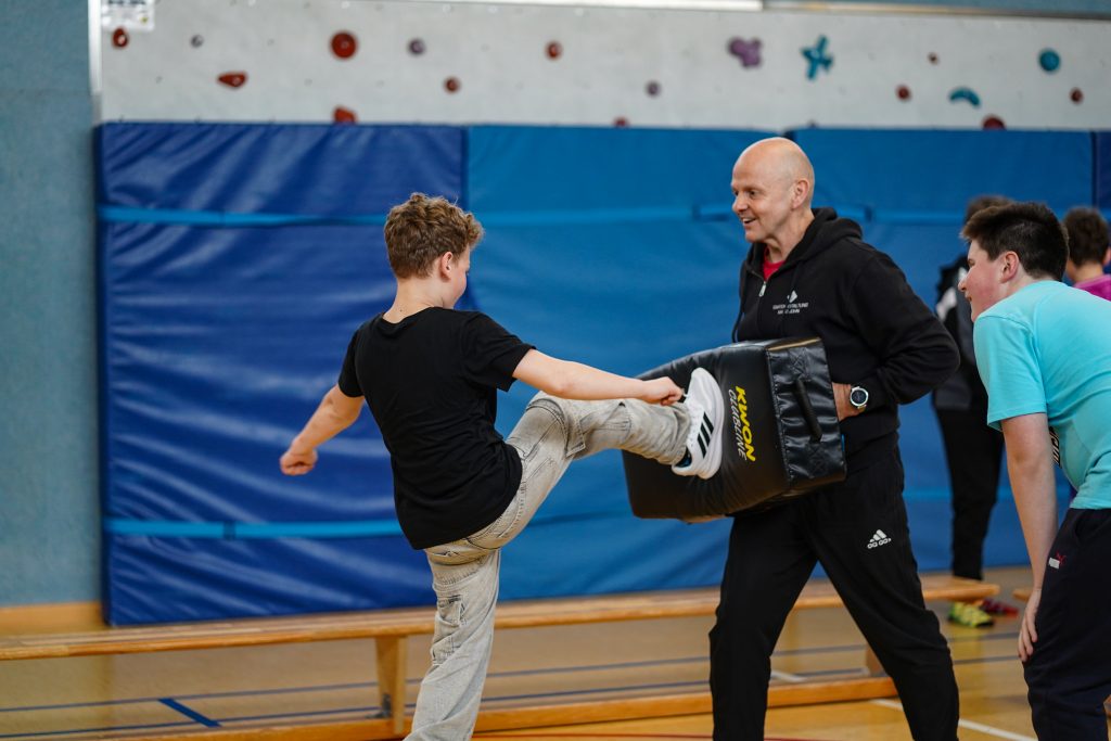 Zu Beginn waren einige der Jugendlichen noch etwas zurückhaltend und begegneten dem Kurs mit einer gewissen Skepsis. Viele traten zunächst eher schüchtern auf. Im Verlauf der beiden Tage legte sich diese Unsicherheit jedoch schnell, und die Teilnehmer wurden zunehmend offener und aktiver. Im Mittelpunkt des Kurses standen Themen wie Selbstbewusstsein, respektvoller Umgang miteinander und der richtige Umgang mit Konfliktsituationen. In verschiedenen Übungen und Rollenspielen lernten die Teilnehmer, ihre eigenen Grenzen wahrzunehmen, klar zu kommunizieren und in schwierigen Situationen angemessen zu reagieren. Effektive Techniken zur Selbstverteidigung sowie grundlegende Informationen zu Notwehr, Nothilfe und Notstand rundeten das Programm ab. Neben praktischen Übungen zur Körpersprache und zur Stärkung des Selbstvertrauens blieb auch genügend Zeit für Gespräche und Fragen. Die Jungen konnten dabei viele hilfreiche Tipps für ihren Alltag in Schule, Freizeit und Freundeskreis mitnehmen.