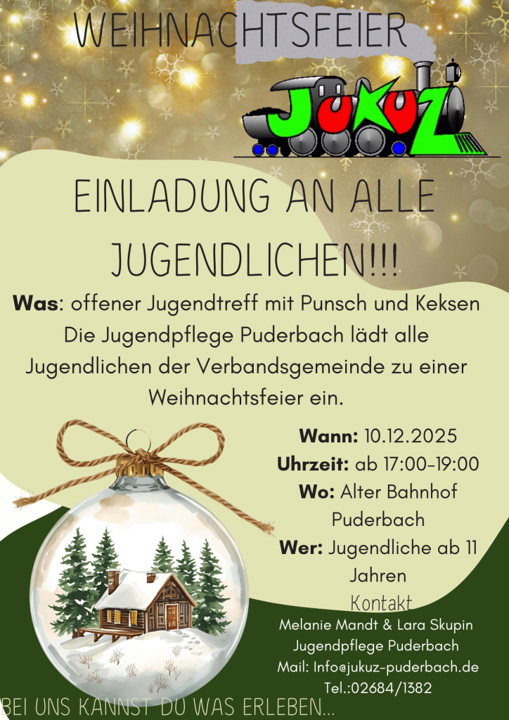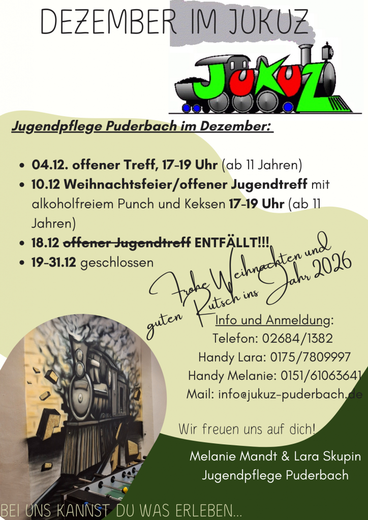 Möchtest auch du die Jugendpflege Puderbach unterstützen, melde dich unter info@jukuz-puderbach.de .